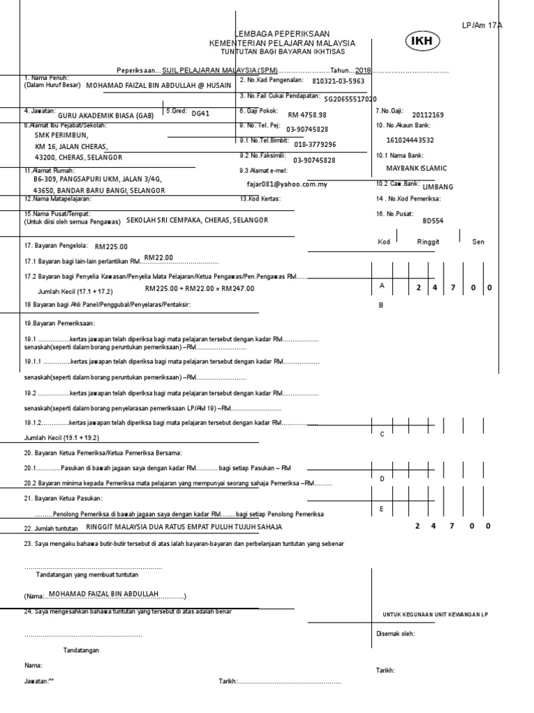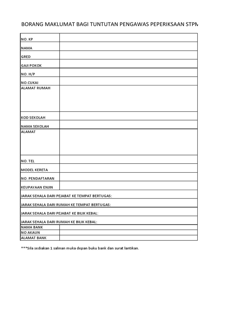 27 senarai semak bayaran pengawas peperiksaan 28 senarai semak bayaran menghadiri mesyuarat 29 senarai semak permohonan pendahuluan diri 30 senarai semak tuntutan perjalanan dalam. 24 sahsiah rupa diri pembantu. Borang yang telah lengkap diisi perlu diserahkan kepada ketua pengawas peperiksaan. Trainees2013 borang tuntutan perjalanan lembaga peperiksaan malaysia. Borang bengkel dan peperiksaan melayu islam beraja (mib) bagi tahun 2021.